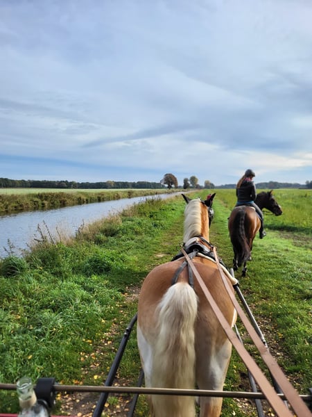 Ik verkoop mijn 8-jarige ruin Novato. Novato had helaas in september 2025 een hoefzweer (röntgenfoto uit oktober aanwezig). Helaas heb ik mezelf toen in november verwond. Sinds half februari wordt Novato weer gereden en in beweging gebracht. Daarom wordt hij nog als ongetraind en aanzienlijk onder de marktwaarde aangeboden. Hij is door mij voorzichtig opgeleid: - Schofthoogte ongeveer 1,63 m - E-licentie - Aangedreven met één- en tweespannen (recreatief) - Kent regelmatige buitenritten (zowel alleen als in gezelschap met een tweede paard) - Beheerst ook springen (buiten en rijbaan) - Absoluut smid- en laadvaardig - Volledig brave dierenarts- en osteopathiebezoeken - Kindervriendelijk - Hij beschikt over Spaanse papieren - Tetanus- en griepvaccinaties up-to-date - Zeer mensgericht Novato is in oktober 2025 door een paardenorthopedist behandeld. Momenteel staat hij van ongeveer 6 uur ’s ochtends tot 18 uur ’s avonds samen met een Shetlander op de paddock. ’s Nachts staan ze allemaal in de stal. Een groot deel van zijn toebehoren (hoefbeschermers, bit, zadelkast, dekens, rijtuiguitrusting, zadelschabracken, longeeraccessoires, etc.) kan tegen een meerprijs worden overgenomen. We zoeken een persoon met hart, paardenverstand en plezier in de omgang met een jong paard, die deze lieve ruin verder wil ontwikkelen. Meer informatie in een persoonlijk gesprek ter plaatse. Sinds half februari wordt Novato weer getraind en in beweging gebracht.