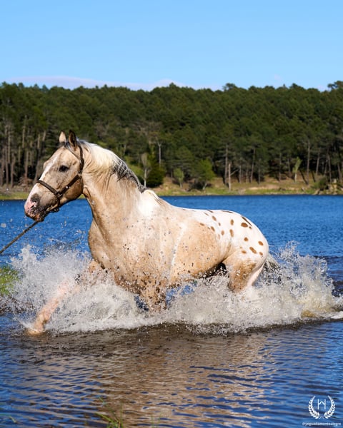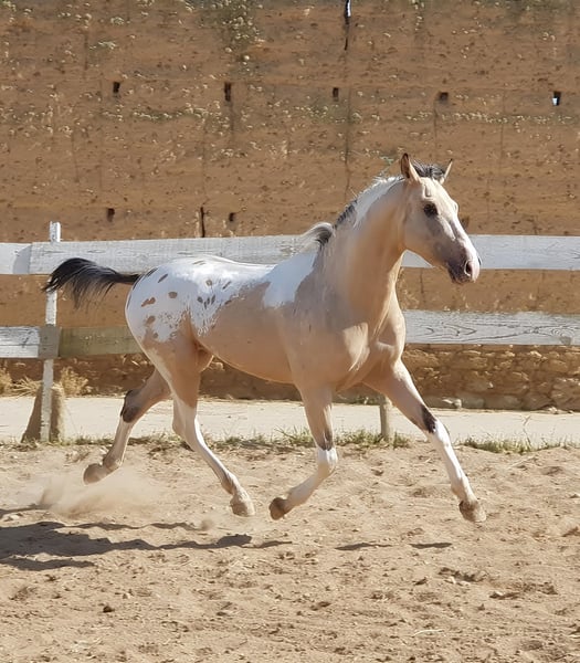 The stallion that created Yeguada Monte Alegre, the cornerstone on which this wonderful project was built… is available! Are you looking for a truly exclusive stallion with unique genetics? Or a special, one-of-a-kind riding horse to enjoy endless rides and the pure pleasure of riding? Born on 2 May 2016 and registered as CDE with ANCADES, GALLO (Spirit CDE) is exactly that special horse. ▫️ Training level GALLO has a very solid basic training, based on the three natural gaits: walk, trot and canter, both in the arena and out in the countryside. ▫️ Beauty – genetics and conformation Outstanding beauty, very harmonious with an Arab-influenced expression. Spectacular, compact and powerful build. His genetics are UNIQUE – there is currently no other horse like him. 🔬 GENETIC COAT: (( gg Aa Ee CRcr TOto LPlp PATN1patn1 nd1nd1 )) He does not produce grey horses. He is a buckskin (bayo) and can produce black, chestnut and bay. His Cream dilution gene allows buckskin, palomino and smoky black; with dilute mares also perlino, cremello and smoky cream. His Tobiano gene produces pinto horses, most commonly with four high white socks and broad facial markings. His LP (Appaloosa) + PATN1 genes produce all types of Appaloosa coats: leopard, semi-leopard and snowcap, with or without spots, always large and oval. He is homozygous for the nd1 gene, therefore producing primitive markings (dorsal stripe and leg barring). ▫️ Absolute versatility GALLO works both as a breeding stallion and as a riding horse. 🌍 National and international transport Once the ideal buyer is found, transport can be arranged through our trusted agencies. 🫴 Contact us if you believe this is the horse you are looking for, and don’t miss the interviews pinned on our profile to get to know GALLO in depth. 📸 @almarevisual