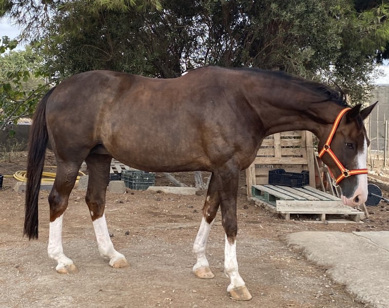 En venta yegua hannoveriana inscrita en Ancades como CDE. Hija de Sancisco, y nieta de Sandro Hit - Londonderry. Alazana tostada, careta y cuatralba. 14 años de edad, alzada 1,68 m. Vacunas y desparasitaciones al día. Se vende como yegua de CRIA o PASEO. Esta super montada, carácter excelente, sirve hasta para niños, aunque con su chispa propia de caballo de deporte. Ha tenido 3 potros y siempre muy buena madre, y buena fertilidad. Libre de piroplasmosis. Directa del ganadero, sin intermediarios. Un solo propietario desde su nacimiento. También esta en venta su hija de capa pia, con 3 años, se puede hacer precio de lote. Ubicada en Almería (España) Podemos organizar el transporte a cualquier ciudad.