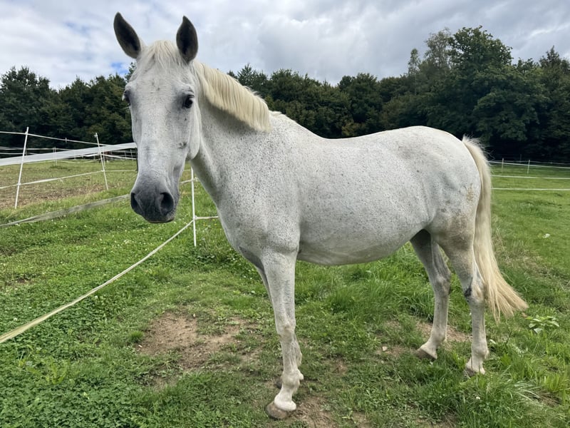 Wir haben uns entschieden unsere PRE Spanier Stute Gloria (geb. 2007) ca. 1,55 m groß zu Verkaufen. Wir habe sie als Schulpferd gekauft, allerdings stellte sich heraus, dass Sie das nicht ist. Sie ist eine sehr feine, sensible, nervöse Stute, die einen Menschen braucht, der Ruhe mitbringt und ihr die Zeit gibt anzukommen. Sie hat einen Charakter aus Gold. Im Umgang vom Boden ist sie ein absoluter Schatz. Sie liebt es, wenn Kinder sie betüddeln. Beim Reiten ist sie eher hektisch (Spanier typisch) und braucht dort eine Person die ihre Ruhe übermitteln kann. Gloria ist kein reines Anfänger Pferd. Sie kommt mit ständigem Reiterwechsel nicht klar. Bei uns hat sie eine Reitbeteiligung die sich die Ruhe und Zeit nimmt, da klappt es auch unterm Reiter mittlerweile sehr entspannt. Wir wünschen uns für Gloria eine Person, die ihr die nötige Zeit gibt, um anzukommen. Wenn man ihr Vertrauen mal gewonnen hat, macht sie alles für Ihre Bezugsperson. Gloria hat eine Narbe hinten links am Sprunggelenk. Diese beeinträchtigt sie nicht und hat noch nie Probleme gemacht. Wenn die Maus euer Interesse geweckt hat oder ihr weitere Infos möchtet meldet euch gerne. ☺️