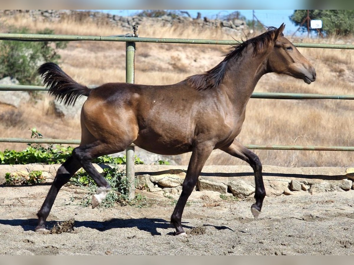 This exceptional buckskin filly, the result of a unique mix between a 1.80 m tall KWPN mother and a 1.69 m tall Spanish PRE Pearl stallion, stands out for her extraordinary movements and elegant morphology. With an impeccable physical structure, she has excellent legs and hooves, which makes her an ideal option for both dressage and other disciplines. Her genetics combine the best of two worlds: the power and height of the KWPN with the nobility and character of the PRE, ensuring a promising future for those looking for a filly with great projection and quality.
