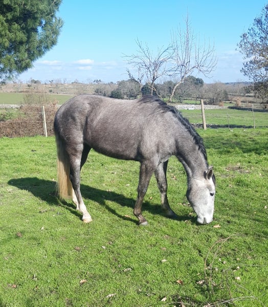 Vende puledra CDE, nome TRIANA AC, di colore tordo, di 2 anni e mezzo (nascita 23/05/2021). Figlia di un cavallo lusitano di nome GRATO, che compete a livello Gran Premio sia a livello nazionale che internazionale (selezionato a livello nazionale nella categoria infantile). Madre CDE alazana di nome GANADERA. Ben curata e mansueta. Si trova a Las Uces (Salamanca). Contatto: allevamento ACdiversity, 607306608.