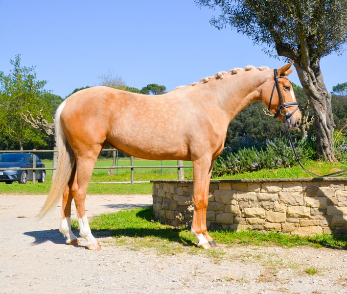 Potra CDE (spanisches Sportpferd) im Alter von 4 Jahren, 1,61 m groß, ideal für Dressur- oder Springwettbewerbe. Regelmäßig im Dressurtraining geritten und im Springen im Aufbau, zeigt sie gute Anlagen. Gute Röntgenaufnahmen (Röntgenbilder auf Anfrage verfügbar). Sie hat ein freundliches Wesen, benötigt aufgrund ihres Alters jedoch eine erfahrene Hand. Aufgezogen bei uns und bereits desensibilisiert. Videos auf Anfrage im Privaten. Standort in der Nähe von Girona.