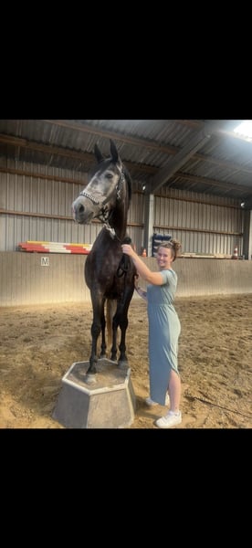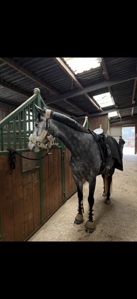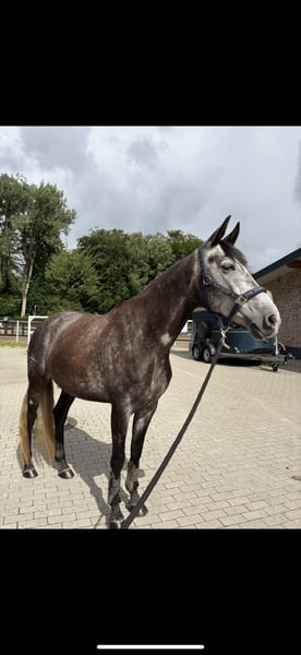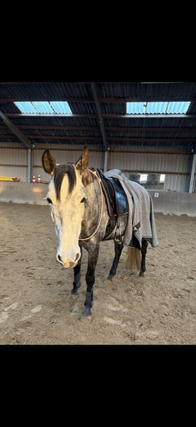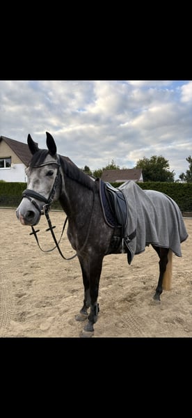 Hallo, zum Verkauf steht schweren Herzens meine 5-jährige Cruzado-Stute Finea. Sie ist ca. 1,58m groß. Finea ist eine sehr liebe, entspannte und sensible Stute mit einem angenehmen Go und ehrlicher Arbeitsbereitschaft. Sie wurde jetzt bei mir 1,5 Jahre geritten. Meine Trainerin und ich haben sie auf einem sicheren E-Niveau ausgebildet. Letztes Jahr waren wir bereits zweimal auf Turnier, wo sie sich auch sehr brav und gelassen gezeigt hat. Aktuell wird sie dressurmäßig gefördert, sie kennt aber auch Cavaletti- und Stangenarbeit, dies bereitet ihr auch sichtlich Freude. Das Springen wurde bisher nicht gefördert. Im täglichen Umgang ist Finea sehr menschenbezogen, ein kleiner Quatschkopf und will immer gefallen. Insgesamt ist sie im Umgang sehr unkompliziert. Beim reiten ist sie dafür sehr sensibel. Daher ist sie nicht Anfänger geeignet, sondern benötigt einen sicheren, ruhigen und geduldigen Reiter, der gefühlvoll ist und Lust hat, sich auf ein sensibles Pferd einzulassen. (Hält sich ab und zu fest und kaut dann auf dem Gebiss rum. Nicht immer! Kann man ja auch super dran arbeiten.) Sie hört sonst schon sehr gut auf Hilfen, sowie Stimme. Sie macht echt Spaß zu reiten. Longieren klappt mittlerweile auch gut, benötigt jedoch weiterhin eine klare, liebevolle Hand (losrennen). Am Anfang testet Finea bei fremden Reitern, das lässt dann aber schnell nach 3,4 Minuten nach. (Typisches Stutenverhalten und wenn das Bein kommt, gehen die Ohren nach hinten). Dann muss man einfach vorwärts reiten und dann ist auch alles wieder super. Sie ist noch nie gestiegen oder hat ernsthaft gebockt. Sie ist verladefromm und steht auf dem Anhänger. Transporter fahren (rückwärts) ist nicht so ihrs. Finea eignet sich besonders für fortgeschrittene Reiter, die im gehobenen Freizeitsport unterwegs sind oder sich vorstellen können, ab und zu Turniere zu reiten, dabei aber vor allem Wert auf eine partnerschaftliche Beziehung zum Pferd legen. Wichtig ist mir, dass sich der zukünftige Besitzer bewusst ist, was Pferdehaltung bedeutet: Ein Pferd zu haben bedeutet, dass man 5-7x die Woche beim Pferd ist. Man braucht Geduld , Ruhe und Konsequenz. Die finanzielle Verantwortung darf man nicht unterschätzen! Finea steht im Moment tagsüber draußen und Nachts in der Box. Kennt aber auch Offenstallhaltung, was auch kein Problem ist, wenn Unterstellmöglichkeiten vorhanden sind. Sie ist eher Rang mittig und eher leichtfuttrig. Finea hat keine bekannte Abstammung, nur einen Pass. Bilder der Eltern sind vorhanden. Finea benötigt vorne einen Beschlag, sonst läuft sie fühlig. Eine AKU kann vom Käufer auf eigene Kosten gemacht werden. Ihr eines Vorderbein, sowie Rücken und Hals wurde bei mir geröntgt, und ist unauffällig. Wenn man eine Beugeprobe macht, ist diese positiv. Finea ist kein Notverkauf! Sie wird nur in allerbeste Hände abgegeben! Beim Kauf wird ihr Sattel mit verkauft, sowie ihre Trense und ihre ganzen Decken, die sie benötigt. Optional gerne noch den Rest. Bei einem Probereiten werden 20€ berechnet, die bei einem Kauf natürlich verrechnet. Wenn sie dein Interesse geweckt hat und du ernsthaftes Interesse hast, freue ich mich sehr über eine aussagekräftige Nachricht von dir. Ganz liebe Grüße Jamie und Finea