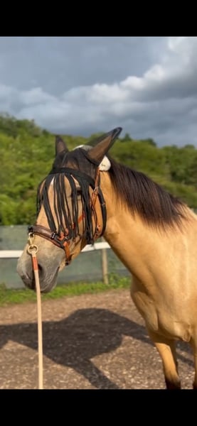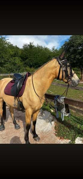 Hello, With a heavy heart, I am selling my 5-year-old Spanish mare, Santhana "Toffee." Her height of 1.60 meters makes her suitable for a variety of disciplines. She is a well-built mare, versatile for relaxed rides (even alone, absolutely no problem), groundwork, or higher-level sport. She has three wonderful basic gaits and brings great joy to her work. In the arena, she already masters quite a bit. Counter- and shoulder-in, renvers, travers, Spanish walk. From walk, she can be collected into canter or stand. She especially enjoys work in canter. As a young horse, Toffee sometimes tests the leadership qualities of her handler. She will NEVER become headstrong or dangerous; on the contrary, she always wants to please and do everything right. Toffee has been professionally trained for the past 12 months. Absolutely priority on the horse’s well-being over price! Please feel free to contact me with any questions!