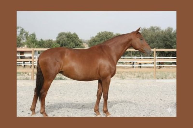 Trabaja con buen nivel de doma: tres aires, apoyos y comenzando cambios de pie. 174 cm de alzada, presencia e impacto visual innegable. Dorso largo y musculado, cuello bien insertado y tren posterior fuerte. Buena actitud en pista, respetuosa en el manejo y fácil de llevar para distintos perfiles de jinete. Apta para doma, salto o completo. Excelente opción también como proyecto de cría deportiva orientada a tamaño y potencia.