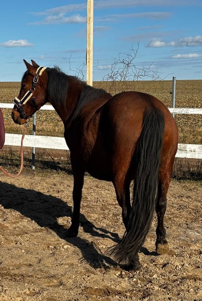 Traumhafte spanische Stute – tragend & mit großem Potenzial Zum Verkauf steht eine wunderschöne spanische Stute. Sie ist fast 7 Jahre alt, ca. 1,55 m groß und eine braune Stute mit Temperament. Die Stute ist angeritten und wurde bereits im Gelände geritten – sogar von meiner 13-jährigen Tochter. In der Bodenarbeit ist sie sehr fein, sensibel und aufmerksam. Sie reagiert ehrlich auf ihren Menschen und überzeugt durch ihre sehr feinfühlige Art. Beim Schrecktraining zeigt sie sich absolut kooperativ und macht alles brav mit. Zudem besitzt sie sehr schöne, ausdrucksstarke Gänge, die ihr auch für eine weitere Ausbildung viel Potenzial geben. Ein echtes Highlight: Sie ist hochtragend von einem Volltiger – der Geburtstermin ist Mitte April. Auch ihre fast zweijährige Tochter kann gerne besichtigt werden. Diese Stute ist das perfekte Pferd für jemanden, der Freude daran hat, ein sensibles, ehrliches Pferd weiter auszubilden und sich gleichzeitig auf ein ganz besonderes Überraschungspaket freut – nämlich sein eigenes Fohlen von Geburt an aufwachsen zu sehen. Sie sucht einen Menschen der ebenso feinfühlig ist wie sie und viel Pferdeverstand mitbringt. Nichts für Anfänger sondern Menschen die mit ihr zusammen wachsen wollen. Ein tolles Pferd für Menschen mit Gefühl, Zeit und dem Wunsch nach etwas Besonderem. Das letzte vorletzte Bild zeigt den Deckhengst. Das letzte Bild ist ihre Tochter. Das Video ist am Anfang des Anreitens entstanden. Bei ernsthaftem Interesse bitte ich um einen Anruf. Gern beantworte ich alle weiteren Fragen.