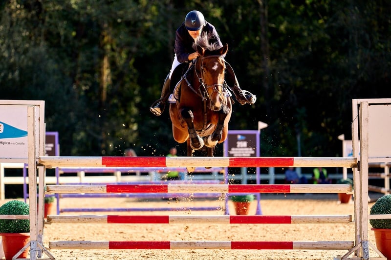 Yegua muy fácil de montar. Muy buena cabeza, siempre al otro lado. Con sangre, pero siempre en positivo. Haciendo con regularidad recorridos y buenos resultados en 1.20 con amateur. Fuerza y cabeza para pruebas superiores. Hermana de caballos haciendo 1.45. La madre corrió 1.45 con amateur. Gran oportunidad. Buena salud y placas de ha e 15 dias. Se vende por dejar de montar.