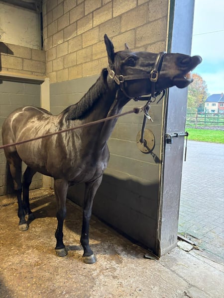 Naam: Azooz Leeftijd: 9 jaar Geslacht: ruin Kleur: zwart Stokmaat: 1.55 m Azooz is een knappe, intelligente en leergierige ruin met een gouden karakter en een fijne werkinstelling. Hij kent al veel dressuuroefeningen zoals wissels, appuyementen, wijken en stap-galop-overgangen, schouderbinnenwaards, travere, contra, enz... en pakt nieuwe oefeningen snel en met plezier op. Naast het werk in de bak geniet Azooz ook van buitenritten – hij gaat graag alleen of met andere paarden op pad en is daarbij betrouwbaar en oplettend (in groep is hij graag van voor). Springen doet hij met enthousiasme; hij springt een parcours van 1.00 m met gemak en kan met een ervaren ruiter ook 1.10m - 1.15m. De afgelopen drie jaar heeft hij samen met mij de ruiterschool doorlopen, waarbij hij zich heeft ontwikkeld tot een betrouwbare, veelzijdige en plezierige partner om mee te rijden. Kortom: Azooz is een charmante, eerlijke en werkwillige paard die veel te bieden heeft aan een ambitieuze ruiter die op zoek is naar een fijn maatje om samen verder te groeien — in zowel dressuur, springen als recreatie (keuren kan op kk)