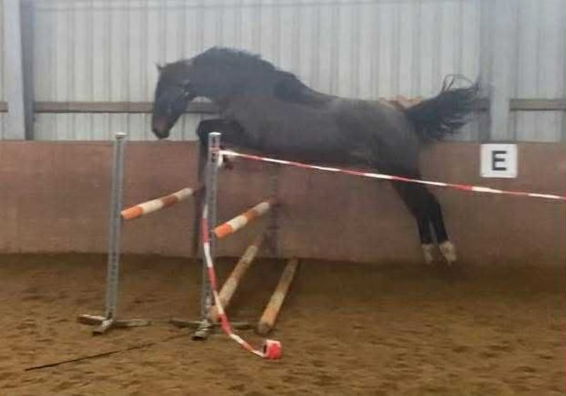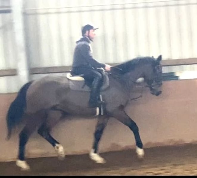 Dieser braune Wallach ist fast vier Jahre lang zum Wachsen auf der Wiese in Irland groß geworden. Seit Dezember 2025 ist er bei uns in Deutschland und gewöhnt sich an das Leben hier. Jetzt ist er seit zwei Wochen unter dem Sattel und macht seine Sache sehr gut. Im Umgang ist er noch etwas skeptisch, sobald man drauf sitzt ist die Skepsis verflogen. Umwelteinflüsse machen ihm nichts aus, er kennt Trecker Kunde und spielende Kinder. Beim Hufschmied braucht er noch Routine und etwas Ruhe. Er geht in der Halle und auf dem Platz war er auch schon ohne Probleme. Er kennt gemischte Weidehaltung, steht bei uns in der Boxenhaltung. Leider haben wir festgestellt, dass er manchmal in der Futterzeit koppt. Draußen macht er das nicht. Der Anfang als Reitpferd ist nun gemacht. Wir hoffen, er findet eine Person, die ihm das Koppen verzeiht , evtl., einen Offenstall hat, dann wird er ein patentes Pferd für lange Zeit. Der günstige Preis ist dem Koppen geschuldet.
