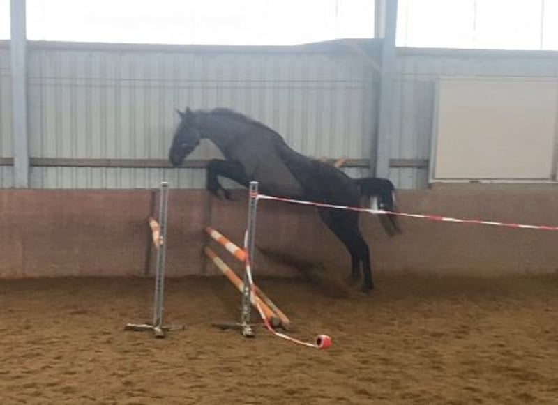Cavallo interessante con tre ottimi passi di base e un salto libero promettente. La sua genealogia è molto promettente: Tyson/Numero Uno x Douglas/Darco. Il castrone è cresciuto finora al pascolo e ora viene lavorato in longe e presto verrà montato. È molto socievole con le persone e non mostra paura. Il cavallo ha una base solida.