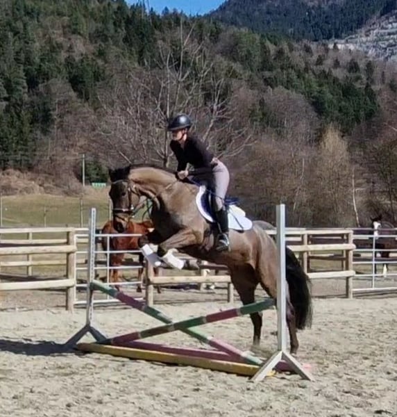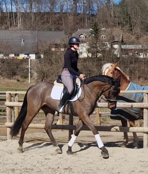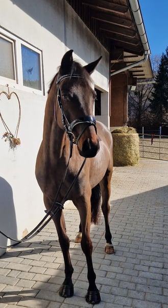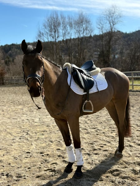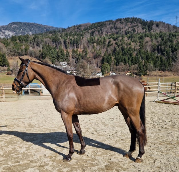 5 Jahre | ca. 162 cm | v. Cornet Obolensky Zum Verkauf steht ein äußerst typvoller und vielversprechender 5-jähriger Irish Sport Horse Wallach, aktuell ca. 162 cm groß (steht noch etwas im Wachstum). Mit seiner edlen dunkelbraunen Jacke ist er ein absoluter Blickfang. Korrekt gebaut, mit gutem Fundament ausgestattet und einem durchweg ehrlichen, menschenbezogenen Charakter überzeugt er sowohl optisch als auch im täglichen Umgang. 🧬 Abstammung Vater ist kein Geringerer als Cornet Obolensky – einer der bedeutendsten Springvererber Europas. Die Qualität am Sprung ist deutlich erkennbar: sehr gutes Vermögen, schnelle Vorderbeintechnik und eine tolle Einstellung. 🐴 Ausbildung & Rittigkeit Dressurmäßig auf solidem A-Niveau ausgebildet Sehr rittig mit angenehmem Go Springt mit viel Übersicht und Qualität Nicht guckig, immer motiviert „auf die andere Seite“ zu kommen Wird aktuell weiter gefördert und gezielt auf die kommende Turniersaison vorbereitet Zeigt definitiv Potenzial für höhere Klassen Aufgrund seines ausgeglichenen, ehrlichen Wesens ist er nicht nur für den ambitionierten Sportreiter interessant, sondern auch als gehobenes Freizeitpferd bestens geeignet. 🌳 Gelände & Alltag Geht brav alleine und in der Gruppe ins Gelände Kein Buckeln, Steigen oder Losrennen Sehr menschenbezogen und unkompliziert im Umgang Schmiede- und verladefromm Vorne beschlagen 🏥 Gesundheit Klinische AKU ohne Befund liegt vor Röntgenbilder können jederzeit auf Wunsch angefertigt werden Regelmäßig geimpft und entwurmt Ein moderner, leistungsbereiter Nachwuchswallach mit Qualität, Vermögen und hervorragendem Charakter – ideal für Reiter mit sportlichen Ambitionen oder als zuverlässiger Partner für ambitionierte Freizeitziele. Nur in fördernde, wertschätzende Hände abzugeben. Bei ernsthaftem Interesse freuen wir uns über Ihre Nachricht. 🐎