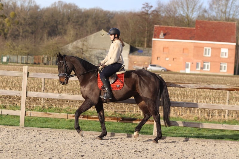 Tiger – magnifique hongre noir de 4 ans (environ 1,66 m) Tiger est un magnifique hongre noir de 4 ans, mesurant environ 1,66 m au garrot. Il est très calme et patient en main, et se laisse manipuler et soigner avec plaisir. Sous la selle, Tiger est souple et réceptif, et se montre comme un cheval calme et fiable, sans comportement problématique. Il aime sauter et le fait facilement, parcourant un parcours de 80 cm sans difficulté. En dehors du manège, Tiger est également un bon compagnon : il n’a pas peur en ville et ne se montre pas regardant. De plus, il est facile à transporter. 📞 Plus d’informations ? 0032 475 68 22 43 🎥 Vidéos disponibles – n’hésitez pas à demander notre site internet.