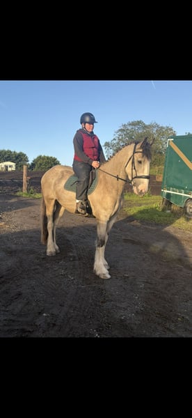 ⭐ Hervorragender 168cm Dun Irish Draught X Wallach – Ruhig, Ehrlich & Perfektes Familienpferd ⭐ • Prince ist ein 5-jähriger Dunfarbener Irish Draught Kreuzungswallach mit einem Stockmaß von 16,2hh, ein seltener und sehr gefragter Typ mit viel Knochenstärke, Qualität und Ausstrahlung. • Ein außergewöhnlich ruhiges und unkompliziertes Pferd, geeignet für Anfänger, Mutter-Tochter-Reiterpaare, Reitschulen oder Wanderreitbetriebe. • Sehr gut dressurmäßig gearbeitet, mit weichem Trensengebiss, läuft schön in Anlehnung und verfügt über drei gute, gerade Grundgangarten. • Sehr angenehm zu reiten, fein an den Hilfen, weder scharf noch triebig – ein komfortables und unkompliziertes Reitpferd. • Im Umgang absolut unkompliziert – brav beim Schmied, Verladen, Einfangen, Scheren und im Straßenverkehr. • Hier von einem kleinen Mädchen geritten, er ist stets bemüht alles richtig zu machen und möchte seinem Reiter gefallen – ein echter Gentleman. • Mehrmals mit den South Westmeaths Jagden gegangen, stets brav und zuverlässig. • Geht alleine oder in der Gruppe ins Gelände und ist absolut verkehrssicher. • Springt einen Parcours sowie Geländehindernisse, ehrlich, mutig und immer bereit alles zu versuchen, was von ihm verlangt wird. • Ein wunderbares Familienpferd, freundlich, sanft und täglich eine Freude im Stall. • Hat auch genügend Qualität und Bewegung für den Showring, bleibt dabei aber unkompliziert genug für den täglichen Gebrauch. • Keine Stalluntugenden und offen für jede tierärztliche Untersuchung. • Preis inklusive Lieferung in Ihren Stall nach Großbritannien. Umtausch möglich, falls Sie nicht zufrieden sind. • Solche Pferde sind schwer zu finden – Prince ist wirklich etwas Besonderes. 📞 Telefon: 00353 868 077 626 📧 Email: gertytynan@gmail.com