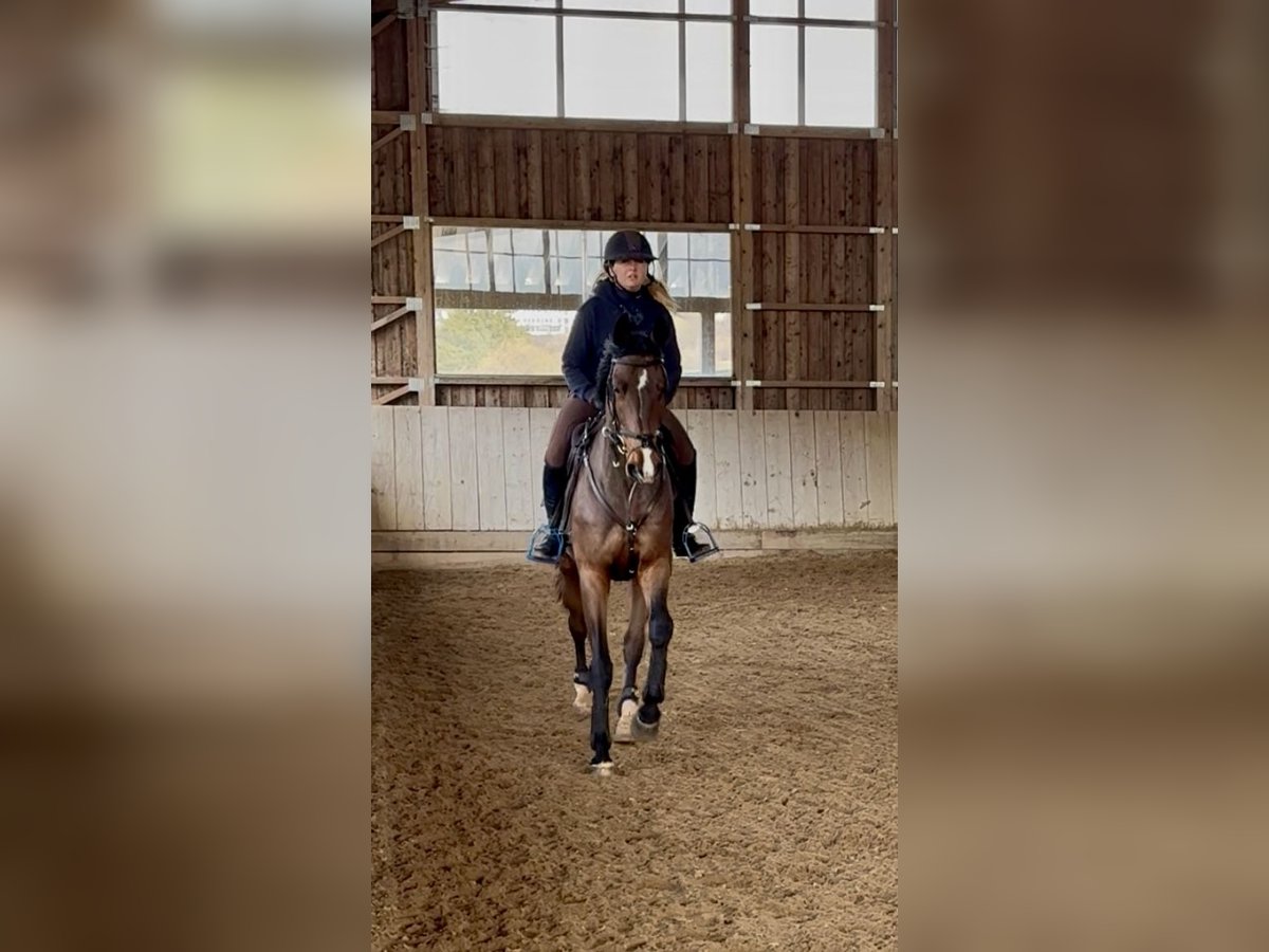 6 jähriger Wallach v. Lucky Boy x Olympic Lux. Bis 120 cm platziert. Ein sehr leichtrittiges, feines Nachwuchspferd. Zeigt sich beim springen mit sehr viel Qualität und sehr guter Art am Sprung. Absolut nicht guckig am Sprung und durch seinen guten Rhythmus hat man immer eine gute Distanz zum Sprung. Sicherlich auch geeignet für die Vielseitigkeit. Aktuelle Röntgenbilder vorhanden.
