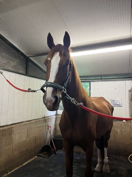 6-year-old Irish gelding – 1.75 m at the withers For sale, due to lack of time, an Irish gelding born on 15/07/2019. Horse of excellent conformation, young and with good sporting potential or for amateur activities. ✅ Never had health issues or lameness ✅ Balanced temperament ✅ Good growth and harmonious development ⚠️ Shows a support tic, manageable without particular complications Suitable for a rider who wishes to grow with him and dedicate consistency. NB: sold with all his equipment (saddle-bridle-blankets) 📍 Available for viewing in Sant'Angelo Lodigiano. 💌 For more information, photos, and videos, please contact privately.