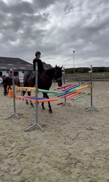 Con Turf Range ottieni esattamente il tipo di cavallo che fa sorridere a tutti. Questo stallone di 9 anni, alto 1,60 m, è un cavallo da passeggio incredibilmente mansueto, che si adatta perfettamente a chiunque. Giovane, anziano, principiante o insicuro — Range si conforma senza problemi al suo cavaliere. Lo utilizziamo anche nelle lezioni per principianti che montano per la prima volta al trotto, e perdona facilmente ogni errore. In compagnia è un tenero, paziente coccolone. I bambini lo portano da e verso il paddock, e lui rimane sempre calmo e amichevole. Range non si spaventa facilmente, non si spaventa durante le uscite in passeggiata e non crea mai problemi. Salta con piacere: Supera facilmente gli 80 cm ed è sempre affidabile e sincero. Durante le campane con i pony, non esita a partecipare a giochi come acchiappare i pesci, bandierine e altre sfide — e abbiamo dei video divertenti che dimostrano quanto sia sicuro e affidabile. Un cavallo da scuola ideale, con un carattere caldo e tranquillo. 📞 Per maggiori informazioni? WhatsApp: +32 475 68 22 43 🎥 I video sono disponibili sul nostro sito – chiedici pure!