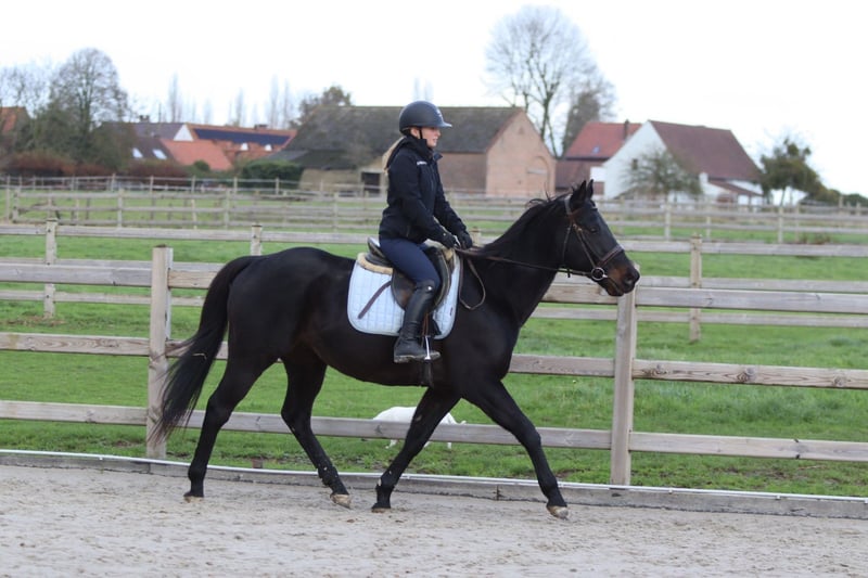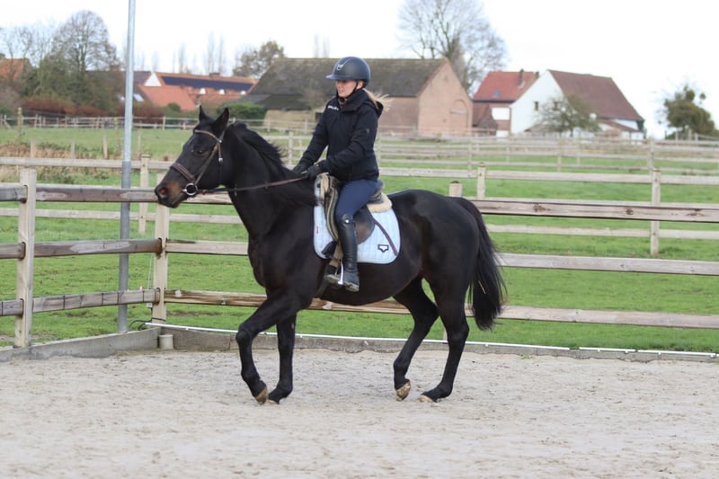 Chez Turf Range, vous trouverez exactement le type de cheval qui fait sourire tout le monde. Ce hongre de 9 ans, mesurant 1,60 m, est un cheval de loisir incroyablement gentil, qui s’entend avec tous : jeunes, moins jeunes, débutants ou cavaliers peu confiants — Range s’adapte parfaitement à son cavalier. Nous l’utilisons même pour des cours destinés à des cavaliers qui montent pour la première fois en trot, et il pardonne aisément toutes les erreurs. En société, c’est un tendre, patient et câlin. Les enfants le prennent eux-mêmes de la pâture et le ramènent, et il reste toujours calme et amical. Range n’est pas un cheval peureux, il ne s’effraie pas lors des sorties en extérieur et ne pose aucun problème. Il aime sauter : Il saute facilement 80 cm, en restant fiable et honnête. Pendant les camps de poney, il participe sans hésitation à des jeux comme attraper des poissons, la course aux drapeaux ou d’autres défis — et nous avons de super vidéos qui prouvent à quel point il est insensible aux surprises. Un cheval idéal pour apprendre, avec un caractère chaleureux et calme. 📞 Plus d’informations ? WhatsApp : +32 475 68 22 43 🎥 Des vidéos sont disponibles sur notre site — n’hésitez pas à demander !