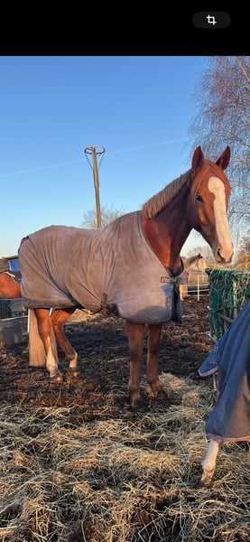 Dieser schöne Wallach ist bis zu seinem 5 Lebensjahr auf der Galopp Rennbahn gelaufen . Seit einem Jahr ist er normal unter dem Reiter unter‘m Sattel, wobei er jetzt seit 2 Monaten pausiert hat, aufgrund der Wetter Verhältnisse und keiner Halle , aber es sollte kein Problem sein, direkt wieder los zu legen . Er ist absolut lieb und hat keinerlei Unarten, er steigt nicht, er buckelt nicht, lediglich, läuft er halt nach vorne wenn man die Beine ran drückt . Daher würde ich sagen, man sollte auf einem E/A Niveau reiten und kein blütiger Anfänger sein. Die Bremse sitzt bei ihm 1a , selbst wenn er los läuft . Leider typisch Rennpferd mäßig , nur durch Zügel und nicht durch sitz . An der Longe saßen schon mehrfach Kinder drauf, da ist er super super lieb und vorsichtig , auch wenn diese nicht reiten können oder rum hampeln , daher könnte ich ihn mir auch super im volti Bereich vorstellen ! Er steht derzeit im Offenstall, mag es aber tatsächlich lieber in der Box . In der Herde ist er mit jedem verträglich, groß , klein, zicke , Hengst oder Fohlen. Er kennt jegliche Konstellation und hat noch nie Ärger gemacht . Ebenso entspannt fährt er Hänger , da Maschiert er im Schlaf rauf und steht 1a ruhig . Beim Schmied ist er genau so brav , ebenso mein Tierarzt . Wir waren noch nie mit ihm im Gelände außer an der Hand ; daher kann ich nicht sagen, wie er da ist. An der Hand war er jederzeit händelbar . Vom Charakter her , ist er wirklich wie ein Hund und möchte immer kuscheln und Nähe . Er würde niemals treten oder sonst wie komisch werden