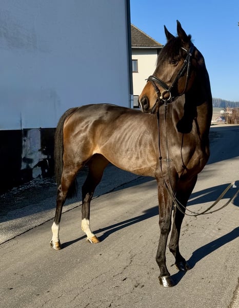 Easy ist eine super liebe sechs jährige, 163 cm große Stute. Sie steht sehr fein an den Hilfen und bewegt sich sehr gerne. Easy springt auch gerne und geht auch brav ins Gelände! Selbstverständlich ist die Stute gesund. Weitere Infos und Videos gerne per WhatsApp oder telefonisch unter: 00436603632373 Standort: Pelmberg 15/ OÖ Besichtigung und Probereiten gerne nach Terminvereinbarung! Der Transport des Pferdes kann gerne übernommen werden