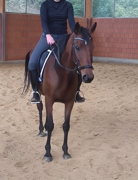 Sweet 9-year-old mare, approximately 158 cm tall, with her heart in the right place. Well-bred (therefore also interesting for breeders) and ridden for leisure. She is familiar with trails, indoor arenas, and outdoor arenas. She is also not unfamiliar with dogs, etc. She integrates quickly into a new herd. If needed, she can be sold with complete new equipment for a small additional fee. Transport can be organized. A veterinary pre-purchase examination can also be conducted by your own veterinarian, including X-rays and blood tests. We look forward to your call at 01774289729. Written inquiries will not be answered.