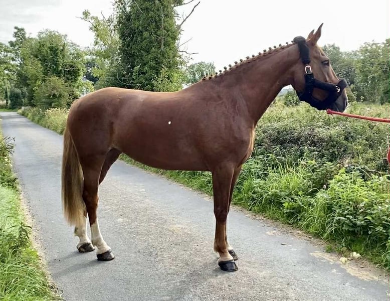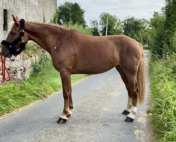 🇮🇪Mevrouw Alderford 🇮🇪 163 cm 9-jarige Ierse merrie 🇮🇪 Vader: Simba (Kwpn) Moederlijn: Castana (Irish Draught) Een heerlijke, rechttoe rechtaan en stabiele rijpaard. Beweegt zeer goed en heeft een goede sprong. Ze is opgeleid over crosscountry hindernissen en gekleurde balken. Geschikt voor veel verschillende ruiters. Rustig om alleen en in gezelschap buiten te rijden. Een gemakkelijke merrie die geniet van borstelen, wassen en aandacht. Heeft eerder gejaagd met de Leitrim Harriers. Prijs €7000 Gelegen in Sligo, Ierland. Regelmatig professioneel transport beschikbaar indien nodig. Proefritten op locatie zijn welkom en open voor klinisch veterinaire inspectie. Veel video’s en foto’s beschikbaar. Neem contact op met Edward op 00353871412129 voor meer informatie of video's.