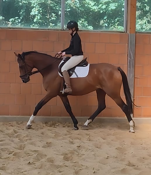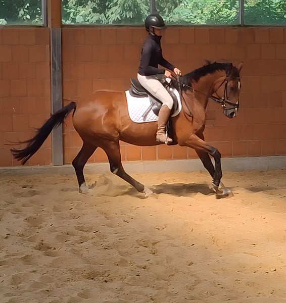 Bellissima cavalla di 10 anni, alta circa 168 cm, con un'ottima presenza e un atteggiamento lavorativo positivo. Molto facile da montare e comoda da cavalcare. È un cavallo che cerca sempre di dare il massimo in ogni situazione. Nella disciplina del dressage, è dotata di un'andatura estremamente interessante. Anche nel salto dimostra di sapersi esprimere bene. Inoltre, ha familiarità con il terreno. Interessante sia per cavalieri sportivi che per cavalieri ricreativi con elevate aspettative. Possibilità di permuta e trasporto. Su richiesta, può essere ceduta con un nuovo equipaggiamento completo a un prezzo aggiuntivo modesto. È possibile effettuare un'ispezione veterinaria pre-acquisto anche dal proprio veterinario, inclusi raggi X e analisi del sangue. Attendiamo con piacere la vostra chiamata al numero 01774289729. Le richieste scritte non verranno risposte.