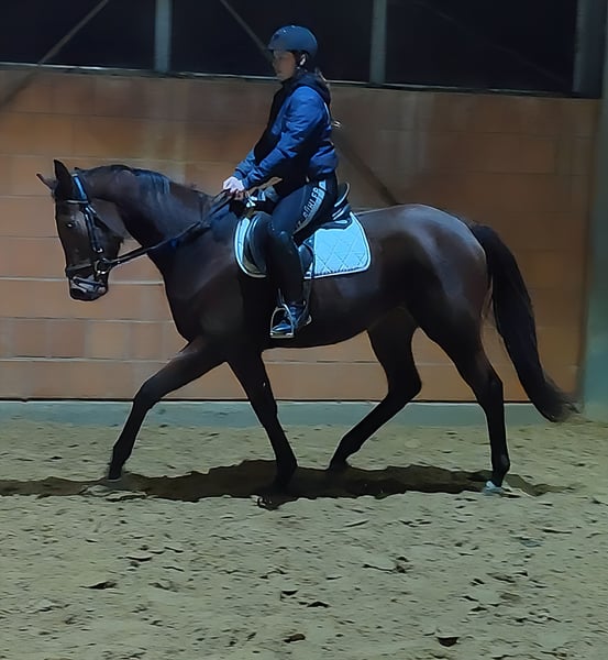 A 4-year-old mare approximately 16.1 hh, showing a very cultivated and rideable demeanor despite her young age. She features elastic movement and presents herself as a promising young horse for the upcoming competition season. Also suitable for ambitious leisure riders. (She is already familiar with riding in the terrain.) If desired, she can be sold with a complete set of new tack for a small additional fee. Trade-in options are available. Transportation can be arranged. A veterinary pre-purchase exam, including X-rays and blood tests, can be performed by your own veterinarian if preferred. We look forward to your call at 015172059610. Written inquiries will not be answered. We do not send videos. No installment payments.