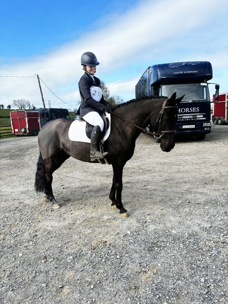 Bells is a 145cm 5 year old Irish Sport pony. She is bred to progress as a high end competition pony 🤩 The Sire is the prolific competition pony stallion, Hans. Bells is a true beauty! A very stylish pony who is admired by all. She is riding very nicely. Bells is very well schooled on the flat. She has participated in pony club dressage lessons for one year with a young teenage girl. Bells is schooling over a track of showjumps and is proving scopey, brave and talented 💫 We think she has much capacity for the future. Bells has also been schooled over Xcountry fences and she loves it! Hacks out alone or in company. Very well handled and cared for. She is very quiet to groom, wash, shoe etc. Bells has all the attributes to make a top class competition pony and will make her next owners extremely happy. Price €10,000. Located in Sligo, Ireland. Regular professional transport available if required. For further information or videos please contact Edward on 00353871412129. All enquiries welcome.