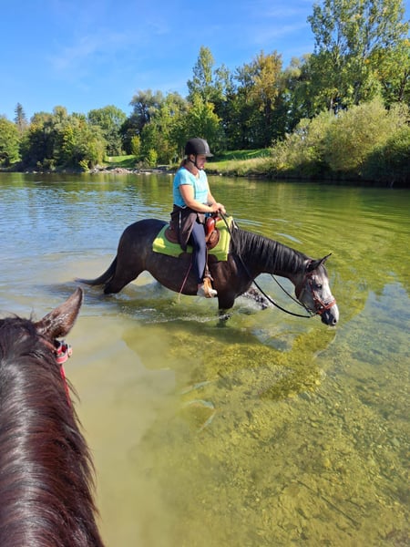 Schickes Englisches Sport Horse zu verkaufen! Name: Bounty Alter: 5 Jahre Stockmaß: 160 cm Vater: Jack the Robin xx (siehe letztes Bild) Er steht im Gestüt Neustadt-Dosse und gilt dort als einer der Top Vererber für die deutsche Sportpferdezucht. Er ist als Veredler nicht nur für die Zuchtrichtung in Springen und Vielseitigkeit, sondern auch für dressurbeonte Nachkommen bekannt. Besonderheiten: Bounty überzeugt nicht nur mit ihrer außergewöhnlichen Optik, sondern auch mit ihrem harmonischen Körperbau. Sie ist ein vielseitiges und braves Pferd, das sich ideal für Freizeitreiten, aber auch für Dressur, Springen oder Gelände eignet. Sie ist klar im Kopf, menschenbezogen und möchte gefallen. Bounty hat genügend Zeit bekommen sich zu entwickeln, sie wurde spät angeritten und ist daher noch unverbraucht. - Englisches Sport Horse mit viel Potenzial - Brav im Umgang und immer händelbar - Nervenstark im Gelände - Verlade- und schmiedefromm - Steht aktuell im Offenstall Bei Interesse oder für weitere Informationen stehe ich gerne zur Verfügung. Eine Besichtigung ist nach Vereinbarung möglich.