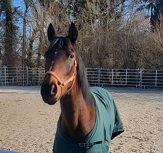 Jument de 8 ans, environ 1,62 m, ayant déjà acquis de l'expérience en compétition. Elle se déplace avec beaucoup d'élasticité et impressionne également lors des sauts. Son caractère ouvert et curieux la rend très sympathique. À confier à des mains expérimentées, d'où son prix avantageux (le plaisir avant le prix). Le transport peut être organisé. Sur demande, elle peut être vendue avec un équipement complet neuf, contre un léger supplément. Un examen vétérinaire peut également être effectué par votre propre vétérinaire, y compris radiographies et analyses de sang. Nous attendons votre appel au 015172059610. Les demandes écrites ne seront pas répondues. Les vidéos ne seront pas envoyées. Pas de paiement en plusieurs fois.