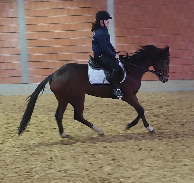 Approximately 8 years old, 16.4 hh mare. An ideal ladies' horse with a positive work attitude. Not hot-tempered and always attentive during work, delivering a thoughtful and engaged performance. She is familiar with indoor arenas, outdoor rings, and trail riding. Sunny is easy to sit and demonstrates a comfortable, soft movement. She is friendly in handling and enjoys being pampered. In a new horse group, Sunny integrates very quickly. She is a mare who knows how to put a smile on her owner's face. If desired, she can be sold with a complete set of new tack at a small additional cost. Transportation can be arranged. A veterinary pre-purchase exam, including X-rays and blood tests, can be performed by your own veterinarian if preferred. We look forward to your call at 01774289729. Written inquiries will not be answered. Calls from blocked numbers will be automatically declined.