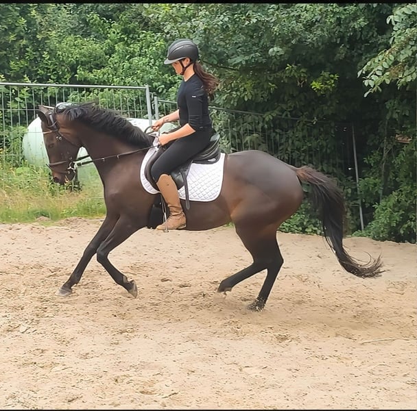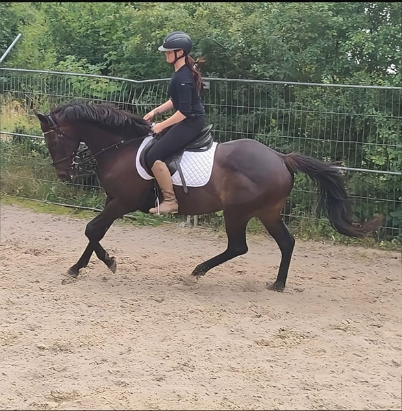 Star (nickname Sternchen) is an absolute eye-catcher. At 8 years old, he is well-mannered and excellently trained. Approximately 152 cm tall (just over pony size). Interesting for children as well as for smaller adults. Ideal for starting in competitions. Extremely comfortable to ride. Relaxed downwards but also easy to position in a perfect frame. Three dynamic, well-sitting gaits. This sweet mare also impresses when jumping. A horse that makes girls' hearts race. If needed, can be sold with complete new equipment for a small additional fee. Transport is possible. A veterinary pre-purchase examination can also be conducted by your own veterinarian, including X-rays and blood tests. We look forward to your call at 01774289729. Written inquiries will not be answered. Calls from withheld numbers will be automatically rejected.