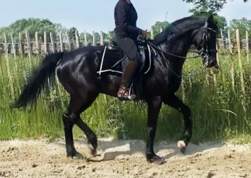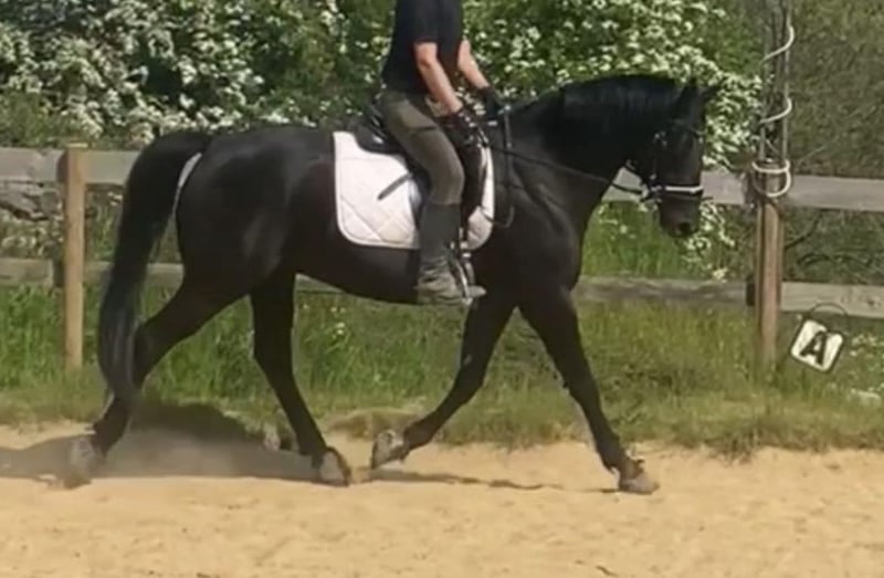 Dreamy ist ein zugewandter, verschmuster Begleiter, der es genießt seine Bezugsperson zu haben auf die er sich auch unterm Sattel einstellt und mit der er durch dick und dünn geht und alles für sie tut. Er ist im Umgang ein wahrer Schatz, zart und liebevoll - sensibel und feinfühlig unterm Sattel und verlangt dort einen ausbalancierten Reiter und korrekte Hilfen. Sein Wirbelengstand ist laut Tierarzt unbedenklich und wir haben ihn damit immer gesunderhaltend geritten und stets im Training gehabt. Man kann entspannt mit ihm ins Gelände. Dort ist er mutig und kennt Ausritte alleine oder in der Gruppe. Er ist dressurmässig geritten, kennt Seitengänge, Außengalopp, fliegende Wechsel, halbe Tritte und beginnt z.Z. Arbeitspirouetten. Er wurde auch sporadisch gesprungen und zeigt dabei Talent und Willen. Auf Turnieren waren wir nicht, damit hat er keine Erfahrung. Er ist ein toller Partner für den ambitionierten Freizeitreiter. Ich gebe ihn schweren Herzens und nur an die passende Person und nachweisliche artgerechte Haltung ab. Keine 24 Stunden Boxenhaltung.