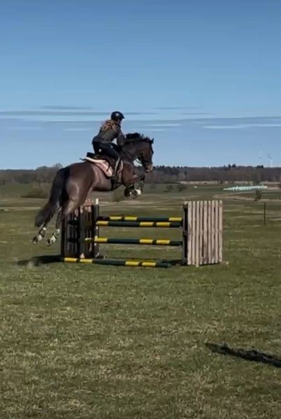 Due to time constraints, this Holsteiner gelding is available for sale directly from the breeder. He enjoys jumping both in the arena and in the field, showing promising abilities in this area. He has a good education and is well-behaved and reliable both in handling and under saddle. Cerberus is familiar with competitions (he loads and gets ready alone), clinics, trail rides, and both the outdoor and indoor arenas. He remains calm and fearless everywhere and is always manageable in unfamiliar surroundings. For the past two years, he has been ridden by a young girl and has been presented at competitions. Therefore, I can very well imagine him as a family horse. He is always careful with children and inexperienced riders. Whether you are looking for a new partner for competition or a loyal leisure companion, this gelding will impress you. If interested, extensive equipment (bridle, double bridle, dressage saddle, blankets, etc.) can be purchased as well. If you have any questions or would like more information, please feel free to contact me.