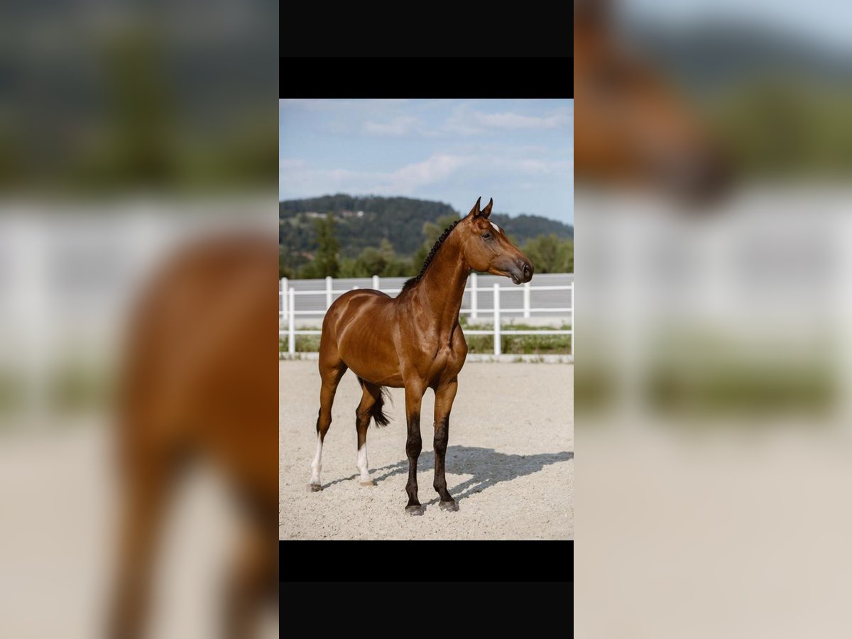 I purchased a 2-year-old Holsteiner stallion from Olaf Rörden (Föhr Island). He is now 10 years old, gelded, stunningly beautiful, very well-trained, and easy to ride on rubber bit (S-level dressage). He has passed one veterinary inspection and has never needed a vet. His pedigree is quite exceptional: direct descent from Baloubet du Rouet x Diamant de Semilly. He is a consistent winner up to 1.30 m, placed at 1.40 m, cautious, and above all, very easy to ride!