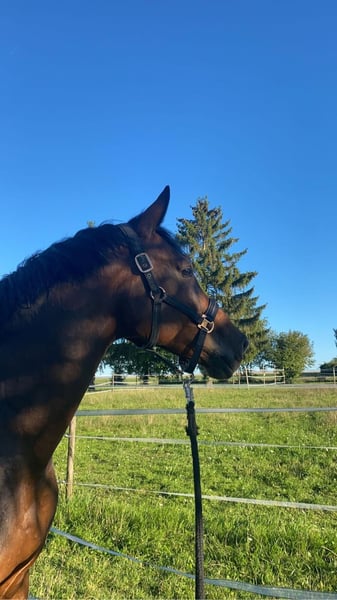 Unser 11 jähriger Wallach Quentendro VA, abstammend von Quintago x Contendro I, Stockmaß 168cm, sucht ein neues Zuhause, da ich aufgrund privater Umstände den Bedürfnissen meines Pferdes nicht mehr gerecht werden kann. Er ist sowohl im Umgang mit Mensch und Pferd als auch beim Reiten total brav, ist verladefromm und somit für jedermann geeignet. Ob Springen, Dressurarbeit oder Gelände, mit ihm ist alles möglich. Er ist im Springen bis L platziert und in der Dressur auf gleichem Niveau ausgebildet. Falls Du also ernsthaftes Interesse hast, melde Dich gerne bei mir über WhatsApp unter der 0173/2734246 Gute AKU vom Kaufjahr 2021, seitdem keinerlei Verletzungen.