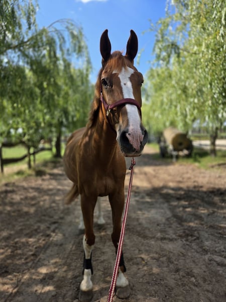 À vendre, un hongre Holsteiner de 12 ans par Clarcon. Il est très attaché à l'humain, se montre brave en extérieur et au maréchal-ferrant, et son comportement général est simple et facile. Il faut souligner sa remarquable attitude de travail. Il est toujours motivé et souhaite faire plaisir. Bien qu'il n'ait pas encore été présenté en public, je peux l'imaginer comme un excellent partenaire pour le sport dans la catégorie A-B. En raison de sa taille d'environ 1,70 m et de son tempérament, il pourrait également convenir comme cheval de voltige, bien que cela n'ait pas encore été testé. Il est vendu uniquement parce que ses propriétaires souhaitent se réorienter. Plus de photos et vidéos sur demande.