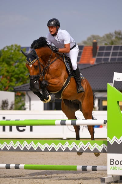 Dieser wundervolle 12-jährige Wallach von Quintago x Carthago überzeugt mit Vermögen und Vorsicht. Am Sprung zeigt er sich stets leistungsbereit – sowohl im täglichen Training als auch auf dem Turnier. Mehrfach M-platziert, immer motiviert und zuverlässig bis zur letzten Linie. Im Umgang ist er ein absoluter Schatz: brav, unkompliziert und sehr menschenbezogen. Seine solide Grundausbildung gepaart mit seinem ausgeglichenen Charakter machen ihn zu einem Partner, mit dem man einfach gern Zeit verbringt – im Stall genauso wie im Parcours. Wir geben ihn schweren Herzens ausschließlich aus Zeitmangel und Bestandsverkleinerung ab. Ein ideales Pferd für ambitionierte Reiter, die einen ehrlichen, leistungsstarken und liebevollen Sportpartner suchen. Gute Röntgenbilder vorhanden aus dem letzten Jahr