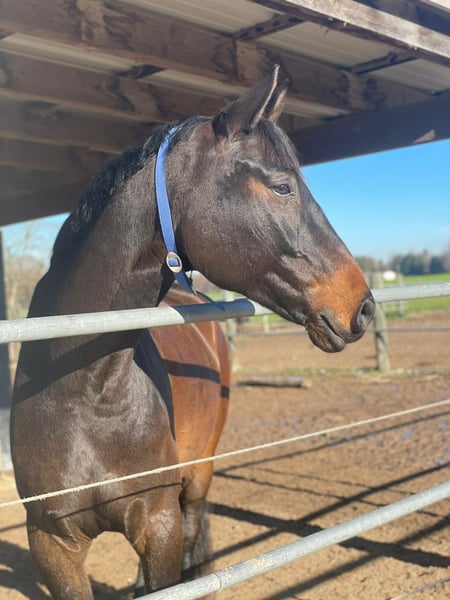 Verkaufe Holsteiner Wallach, ca 1,73m groß, 13 Jahr alt, edel, aus einer Dolany-Mutter, Vater Belissimo. Das Pferd ist von mir selbst gezogen und war immer bei mir. Er ist super brav, Kinder und Anfänger geeignet, hat eine sehr gute dressurliche Ausbildung, bis M Dressur * platziert, S Lektionen abrufbar. Verkauft werden soll er aus mehren Gründen, zum Einen gab es Familienzuwachs und zum Anderen hat das Pferd nicht das gewünschte Potential für die höhere Dressur, außerdem haben wir das Gefühl, dass ihm der höhere Dressursport keinen Spaß macht. Er ist im Gelände super artig, am Sprung hat er auch viel Spaß. Leider kam bei der Verkaufsuntersuchung ein röntgolischer Befund zum Vorschein, klinisch total unauffällig, so dass wir uns nun für ihn ein Zuhause ohne Turniersport wünschen! Aktueller TÜV Bericht liegt vor! Befunde: Hufrolle beidseitig, links stärker als rechts, Zehe 90° links 3 Verschattungen, können Verkalkungen sein, vorne rechts 45° Osteophytenbildung. Klinisch überall unauffällig. Daher auch weiterhin normal belastbar. Offenstall wäre super, aber kein unbedingtes Muss, aber sehr viel Gruppenfreigang. Er möchte sehr gerne in eine nicht allzu große beständige Herde umziehen. Auf weitere Fragen antworte ich Ihnen gerne persönlich. PLATZ VOR PREIS!
