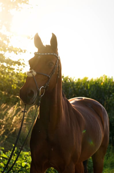 For sale is my Holsteiner gelding named Messi. He was born in 2011 and is sired by Castelan. His main discipline is actually show jumping, where he is very careful and does not want to make mistakes. Due to a longer absence and other interests on my part, he is unfortunately not currently in training and has not been presented at competitions this year. In the past, he has placed multiple times at L-level and once at M-level (show jumping). He also enjoys dressage, although he is a bit sensitive to his environment and can be easily distracted. Otherwise, Messi is sensitive and responds well to the rider's aids. In handling, Messi is an absolute gem. He does not bite, kick, or rear and is very friendly in daily interactions, even with children. He is experienced and uncomplicated when loading and traveling in a trailer. He has regularly seen the farrier, dentist, and equine physiotherapist and is easygoing in these situations as well. Currently, he is in a paddock box with almost daily turnout and is very sociable in a herd. If you have any questions or would like to meet Messi in person, feel free to contact me on WhatsApp or call me daily after 5 PM at the following number: 01756024572.