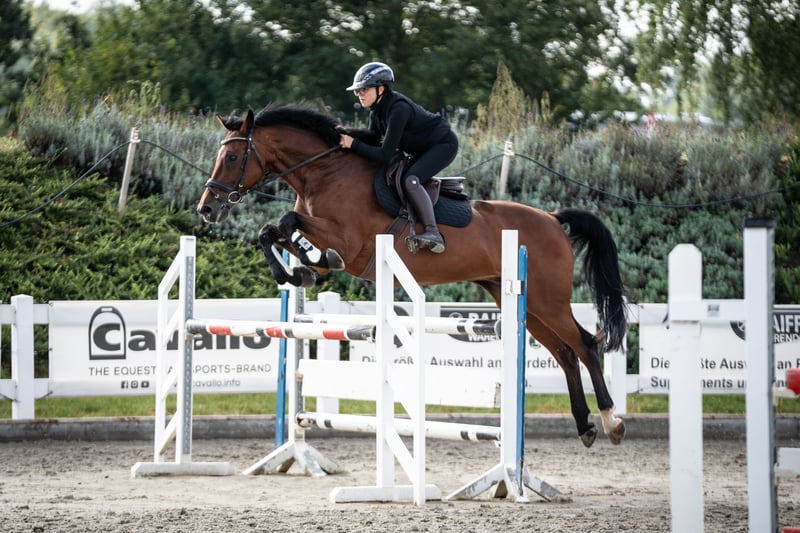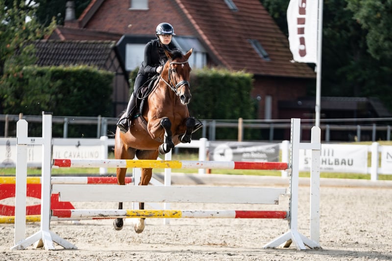 In the course over the colorful poles, Felix feels at home. He thrives in this environment and is full of motivation. In handling, Felix is always composed; nothing can easily unsettle him. He loads onto the trailer without any issues, behaves well for the farrier and veterinarian, and educates our young ones with friendly consistency in the open stable. Felix is familiar with life in a herd in an open stable, as well as box housing. For a relaxed ride at a walk or a sporty gallop through the woods, Felix is easily persuaded. But most of all, he loves to jump with fresh forwardness, which must be allowed, and with a scope and speed that makes hearts race. Those who want to be at the front in a jump-off have found the perfect partner in crime with Felix. If you would like to meet Felix in person or learn more, feel free to send a WhatsApp or SMS in advance!