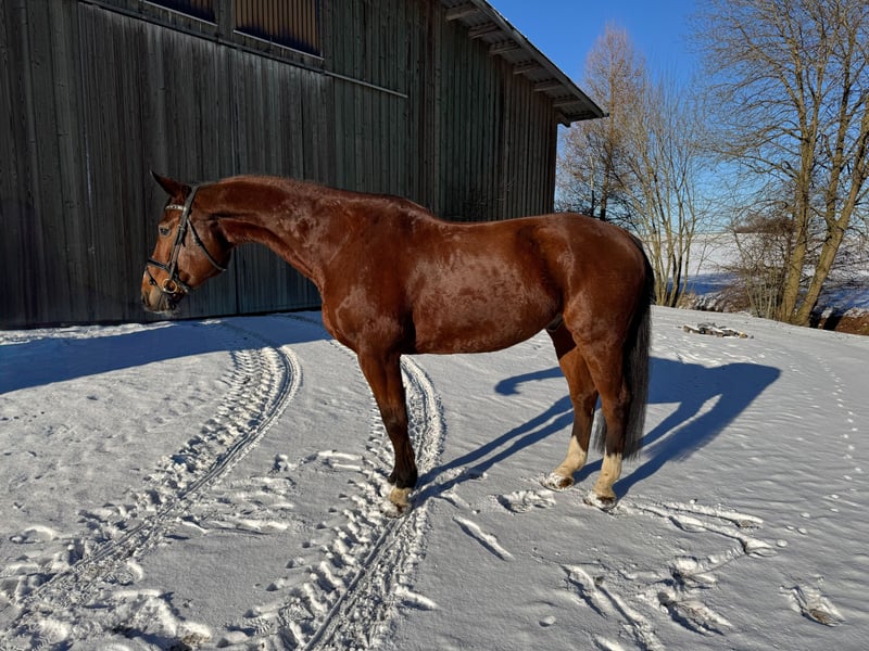 Wir verkaufen unseren braunen Holsteiner Wallach, geboren 2010, mit einem Stockmaß von ca. 1,72 m. Er stammt aus einer sehr guten Holsteiner Leistungsabstammung Casall x Ramiro. Er wurde bis Klasse L im Springen geritten, ist aber auch dressurlich gearbeitet und geht brav ins Gelände. Unter dem Sattel zeigt er sich ehrlich, rittig und zuverlässig. Er kann ruhig und gelassen über Stress gehen, bringt aber gleichzeitig Motivation und Freude beim Springen mit. Damit ist er ein ideales Pferd für den Freizeitbereich sowie für ambitionierte Amateurreiter, die ein vielseitiges Pferd mit Erfahrung suchen. Er macht im täglichen Reiten Spaß und ist dabei stets angenehm zu reiten. Im Umgang ist er unkompliziert, freundlich und menschenbezogen. Er kennt den normalen Stallalltag und ist brav beim Putzen, Führen und Verladen. Ein tolles Pferd mit guter Größe, Erfahrung und Charakter, das seinem neuen Besitzer viel Freude bereiten wird. Kurzinfos: Holsteiner Warmblut Wallach Braun Geboren 2010 Stockmaß ca. 1,72 m Abstammung: Casall x Ramiro Springen bis Klasse L Dressurlich geritten Geländesicher Geeignet für Freizeit & ambitionierte Amateure Probereiten nach Absprache möglich. Bei ernsthaftem Interesse freuen wir uns über eine Nachricht.