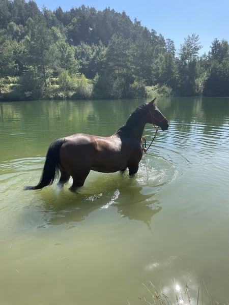Ich suche für meinen Holsteiner-Wallach Caspi (17 Jahre, ca. 173 cm) ein liebevolles, zuverlässiges Zuhause im Raum Bayern. Darüber hinaus kommt NICHT in Frage! Caspi ist ein absolut treues, braves Pferd, das zuverlässig auf feine Hilfen reagiert und viel Freude an der gemeinsamen Arbeit hat. Er benötigt Vertrauen zu seinem Reiter, was man anfangs merken wird, daher sollte es klar sein, dass man sich dies einfach erst erarbeiten muss. Danach tut er er alles für einen. Caspi merkt auch schnell, ob jemand wirklich Ahnung hat von dem was er da oben tut oder ein unsicherer Reiter ist. Man kann mit ihm lernen, er wird dir aber zeigen, ob du reiten kannst oder nicht. Er war früher im Springen unterwegs, braucht das aber heute nicht mehr – gelegentliche kleine Sprünge macht er trotzdem gern. Er: ist in der Dressur auf gutem L-Niveau, liebt Ausritte und Freiarbeit, ist ein angenehmer Partner im Umgang, hat ein ruhiges, freundliches und liebevolles Wesen. Wir hatten noch nie eine Kolik oder eine schlimmere Lahmheit. Er ist rundum gesund und in sehr guter Form (AKU nicht vorhanden) Barhufer Was er braucht: feinfühlig und sicher/selbstbewusst, Langjährige Erfahrung mit Pferden und „mitdenken“, bereit zu sein, sich sein Vertrauen zu erarbeiten und eine echte Partnerschaft aufzubauen. KEIN Anfänger-Niveau – jemand der gerne gehoben Freizeit reitet und sich kein Schulpferd erhofft. Rahmenbedingungen Kein Platz auf Zeit Keine Turnier- oder Springambitionen Reitergewicht max. 75 kg Platz vor Preis Lebenslanges Besuchsrecht Ich werde ihn nicht nach zweimaligen Probereiten abgeben, er soll seinen neuen Reiter kennenlernen können. Das ist auch absolute Bedingung. Wenn das nicht der Vorstellung entspricht, passt es nicht. Equipment gebe ich mit ab. Für jedes Probereiten veranschlage ich 20 Euro, was bei Kauf angerechnet wird. Wenn du Interesse hast … Schreib mir gerne ein paar Infos über dich, deine Erfahrung und was du dir mit Caspi vorstellst. Ich wünsche mir jemanden, der ihn wirklich als Partner schätzt und ihm die Zeit, Liebe und Aufmerksamkeit gibt, die er verdient.