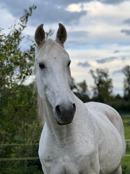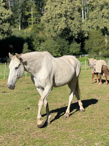 Kalle is a 2009-born Holsteiner gelding (gray, approximately 17.1 hh), sired by Cassini II out of U-Constante. He has competed in show jumping in the past, with his last outing in 2016. As far as known, he is healthy; I have not had a recent veterinary examination or AKU performed. In daily handling, Kalle is quite a character: he can be somewhat dominant but is fair, reliable, and never malicious. He is easy to shoe, though loading requires patience; he will go in, and he is familiar with groundwork and desensitization training. He is capable of going alone from the stable and handles many situations confidently. He particularly enjoys groundwork, where he is motivated, attentive, and eager to learn, often observing others and seeking engagement. Under saddle, Kalle exhibits behaviors that require understanding and realistic assessment. He has learned how to avoid work and sometimes uses this to his advantage. When he becomes tired or under pressure, he may react with resistance and cease cooperation—up to and including a well-practiced disobedience. This is not panic or aggression but very deliberate. He has not shown this behavior when led, and I cannot speak for lunging work with certainty. Anyone seriously interested in riding him must have extensive experience, patience, clarity, and a fine sense for such horses. He is definitely not suitable for beginners or children, nor as a beginner or transition horse for teenagers or similar. I can imagine Kalle as a companion horse, provided he is regularly engaged with through groundwork or handwork. A grooming or handling partnership would be perfectly fine. Most importantly, he needs a home where he can stay long-term. Due to his history, he should no longer be treated as a temporary project or a "wandering trophy." I am only offering him as a permanent partner. I do not want someone to try him out and then return him if things don’t work out—that would not be fair to him. Kalle is accustomed to both paddock and box stall housing, lives peacefully in mixed herds, and is very socially compatible. Currently, he even acts as a protector for my pony. Location: Raum 37130, but a move could be arranged.
