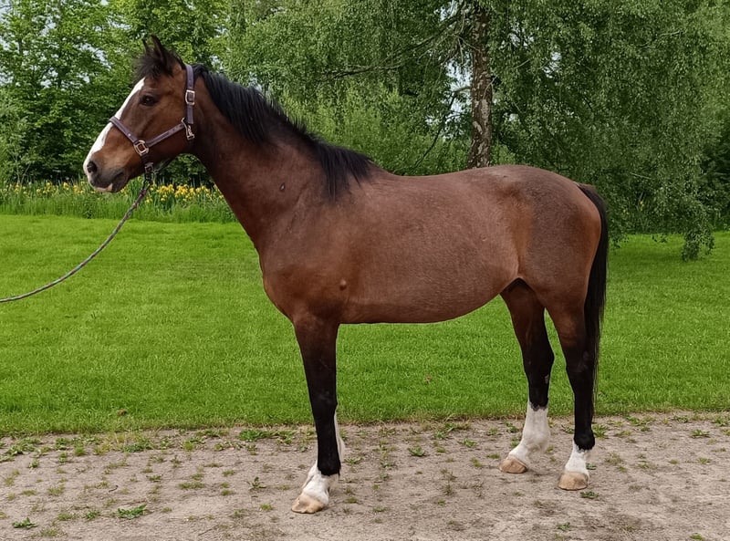 I am offering my adorable, affectionate, and gentle senior gelding as a companion horse. He has arthritis and moves somewhat stiffly, so he is only limited in his riding ability. I would like to find him a loving home with a protection contract, where he will be cared for and pampered. He enjoys walks, light rides, and perhaps has an interest in groundwork or light work in the arena. Jim lives in a small mixed herd in an open stable, and his new home should provide the same environment to keep him active. Additionally, he should be able to go out to pasture during the summer. Special feed is currently not necessary but should be kept in mind for older horses. He does not require medication and, aside from his arthritis, is fit and robust. He is currently barefoot. He has never had issues with his lungs or digestive system. Jim is a lower-ranking horse and very compatible with other horses. Unfortunately, I no longer have enough time to care for him as he deserves and as would be best for him. This is not an emergency surrender; it must be a 100% match. Feel free to contact me with questions or videos, or to arrange a visit.