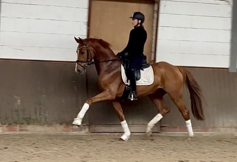 Dear prospective buyers, For questions or to arrange an appointment, please send us a WhatsApp message or an email. You can reach us on weekdays, preferably around midday. If that’s not possible, simply send us a message, and we will get back to you. We look forward to hearing from you! "Fabergé" is a stunning, high-quality, incredibly rideable, and very lovable young gelding. His presence alone captivates everyone who sees him. He has a gorgeous side profile and impresses both riders and spectators with his charm and outstanding quality. He has already made a great impression at competitions, placing in the top positions in all four of his starts, including winning bronze at the Holsteiner Championships for three-year-olds. His heart is pure gold, and he is an absolute cuddle buddy and friend. He came to us directly from the breeder, very lovingly handled, and this shows clearly in his daily behavior and under saddle. In the video, he is presented by an amateur rider, and he simply wants to do everything right. An absolute eye-catcher and a star for the future! A valid TÜV is available.