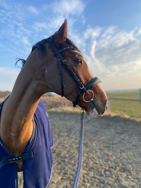 Zum Verkauf steht der Wallach meiner Freundin, die sich sehr schweren Herzens dazu entschieden hat ihn abzugeben. Donut ist seit Fohlenalter in Ihrem Besitz und bei uns im Betrieb artgerecht aber familiär im Herdenverband aufgewachsen. Über die Jahre hat sich nun leider gezeigt, dass Donut einfach nicht das passende Pferd für sie ist und so sind wir nun auf der Suche nach jemandem, der ihn mit all seinen Ecken und Kanten lieben lernt. Er wurde im Herbst/Winter 2024 schonend angeritten. Hatte im Frühjahr noch einmal 3 Monate Pause und befindet sich aktuell wieder im Aufbautraining. Er lässt sich in allen drei Grundgangarten in der Halle und auf dem Außenplatz reiten. Auch seine ersten Sprünge hat er unerschrocken und mit Begeisterung gemeistert. Das Gelände kennt er bisher nur an der Hand, beim Schmied ist er brav und läuft bei uns problemlos barhuf. Anhänger gefahren ist er bisher nicht regelmäßig. Er koppt sowohl in Boxen- als auch in Offenstallhaltung. Wir suchen für Donut einen sicheren konsequenten Reiter, der die nötige Ruhe und Geduld mitbringt um mit diesem sehr sensiblen Pferd zu arbeiten. Mit dem nötigen Know-How kann aus ihm mit Sicherheit ein zuverlässiger Sportpartner werden.