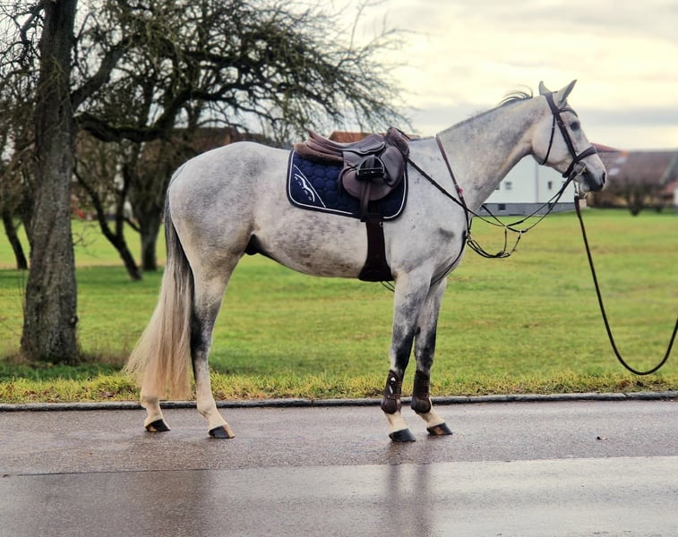 ✨ Ulli, wie wir in Liebevoll nennen, ist 168cm und wird als Freizeitpferd verkauft. Er ist gesund, im Umgang super einfach und besitzt drei tolle GGA. Aufgrund einer Verletzung hat er sein rechtes Auge im Juni 2025 verloren, daher weit unter Wert zu verkaufen. Alles nähere hierzu gerne telefonisch. Er lässt sich in der Halle super schön arbeiten, ist total weich in der Hand und hat super bequeme Gänge, die sich toll sitzen lassen. Ulli hört korrekt auf die Gewichts- und Stimmhilfen. Er will immer alles richtig machen. Beim Springen muss man ihm die Hindernisse und auch Stangen am Boden zuerst einmal zeigen. Ich komme die ersten Sprünge immer aus dem Trab, dann ist es kein Problem. Ich denke hier braucht er aufgrund seines Augenverlusts noch ein wenig Zeit und Geduld, dann wird ein ganz toller Springer aus ihm. Wer weiß, vielleicht sehe ich Ulli und sein/e neue/n Besitzer/in dann auch mal auf dem ein oder anderen Spring Turnier. Ich würde mich auf jeden fall freuen 🤠 Er ist im Umgang absolut liebenswert, verschmust und total unerschrocken. Ulli macht alles super vorbildlich mit, egal ob Hufschmied (Barhuf) , Tierarzt oder Verladen - für Ulli kein Problem. Er hat so eine süße liebenswerte Art! In der Herde ist er absolut unkompliziert und versteht sich wirklich mit jedem. Er spielt super gern mit den Kumpels, verträgt sich aber auch mit Stuten. Da ist er eher zurück haltend - ich denke sie sind ihm zu zickig :) Unter dem Sattel liefert er ab wie ein Großer, egal ob man über eine Wiese galoppiert oder durch Pfützen reiten möchte, Ulli macht jeden Spaß mit. Er ist im Gelände super artig, auch im Straßenverkehr. Er war bisher aber tatsächlich nur in der Gruppe oder zu zweit draußen. Denke alleine ist für ihn aber auch kein Problem. Er ist natürlich komplett entwurmt, geimpft und die Zähne wurden letzten Monat gemacht. Ulli befindet sich aktuell bei mir in Beritt, darf hier auch gerne noch bleiben. Ich wünsche mir eine(n) tolle(n) neue(n) Besitzer(in), wo er am liebsten in einen Offenstall kommt oder ganztägig Auslauf hat (auch im Winter)! Nur in allerbeste Hände!! Ein Anschauen und Probereiten ist jederzeit möglich ☎ Bitte gerne telefonisch bei mir melden