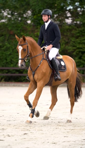 À vendre, un hongre de 4 ans par Colman x Quidam de Revel – un véritable talent avec un caractère exceptionnel et un avenir prometteur dans le saut d'obstacles. Déjà présenté avec succès en compétition jusqu'à l'épreuve de saut d'obstacles A** et placé. Ce jeune hongre a déjà une solide expérience en concours et se montre toujours sûr de lui et concentré dans de nouvelles situations. Il est très gentil au quotidien, toujours fiable et facile à manipuler. Sous la selle, il se montre réactif, calme et facile à monter. Pour son jeune âge, il est déjà étonnamment détendu et sûr de lui, tant à l'entraînement que sur le parcours. Idéal pour un cavalier ambitieux à la recherche d'un jeune cheval de saut bien éduqué, qui souhaite grandir ensemble. Avec Colman et Quidam de Revel, il réunit deux lignées performantes dans le saut d'obstacles, connues pour leur puissance, leur capacité de saut et leur grande force de caractère.